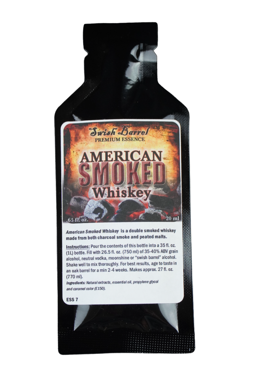 American Smoked Whiskey Essence 20ml made by Swish Barrel Company, is a easy way to mix with any (750ml) of 25% to 30% ABV grain alcohol, neutral vodka. Just pour in contents of the essence bottle and shake thoroughly. For best results age in a barrel to taste for a min of 2-4 weeks.