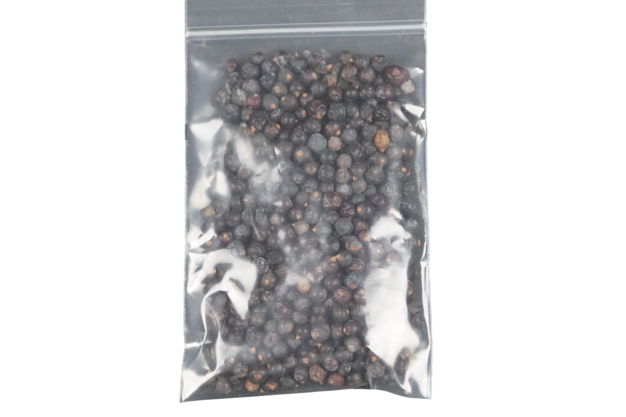 Blue Juniper berries have a strong piney and resinous flavor, imparting a light bitterness and citrus notes. Typically used for gin.