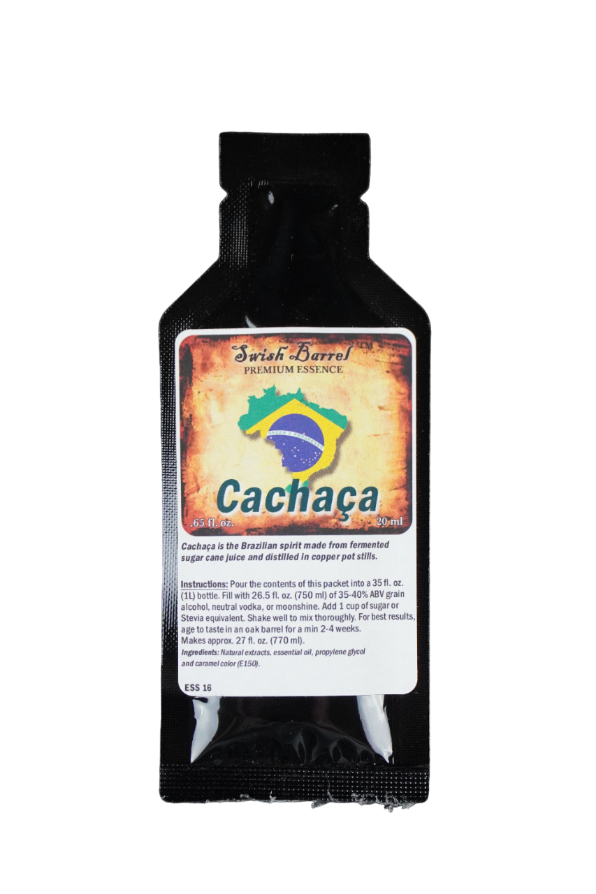 Cachaca Rum Essence 20ml made by Swish Barrel Company, is a easy way to mix with any (750ml) of 25% to 30% ABV grain alcohol, neutral vodka. Just pour in contents of the essence bottle, and 1 cup of sugar into bottle. Shake well until the sugar has completely dissolved, if desired thicken with 1oz of glycerine. For best results age in oak barrel for min of 2-4 weeks