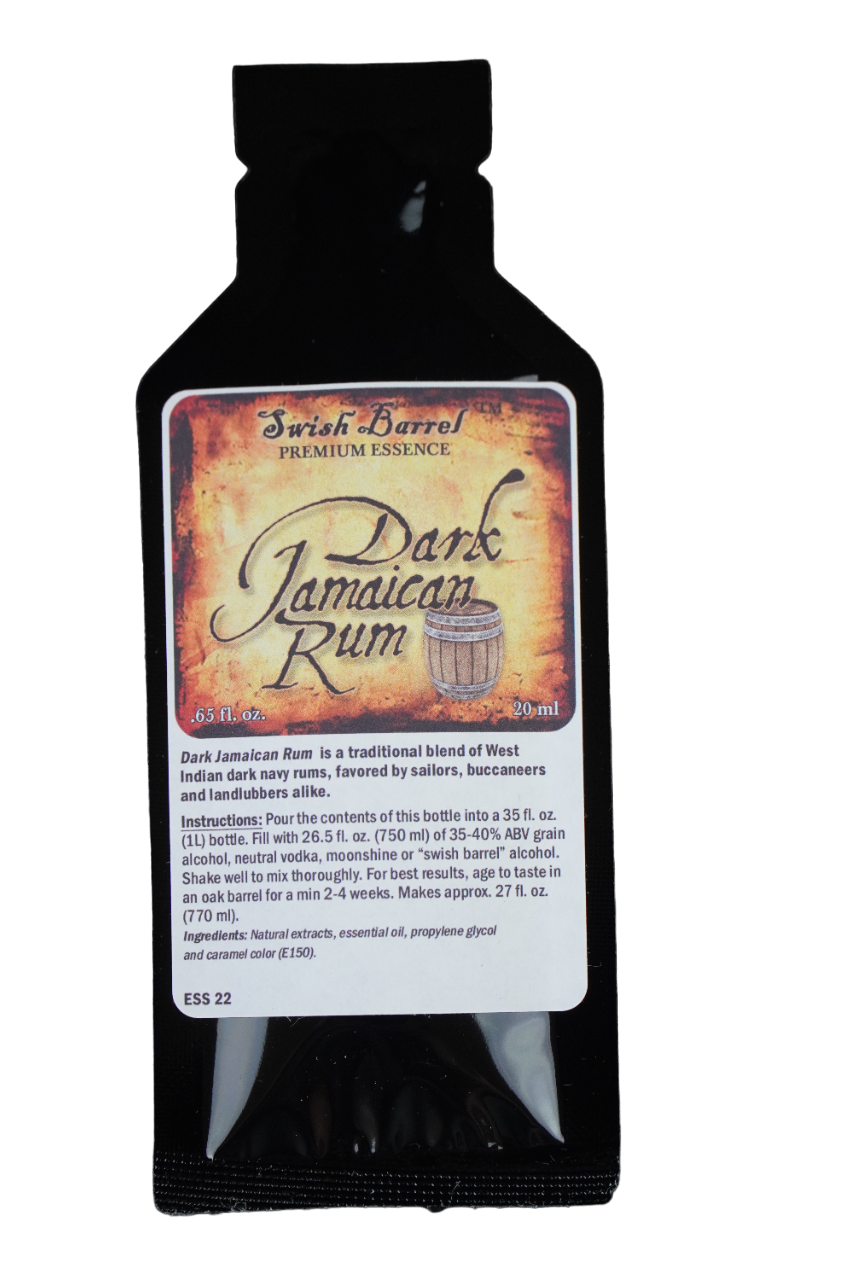 Dark Jamaican Rum Essence 20ml made by Swish Barrel Company, is a easy way to mix with any (750ml) of 25% to 30% ABV grain alcohol, neutral vodka. Just pour in contents of the essence bottle and shake thoroughly. For best results age in a barrel to taste for a min of 2-4 weeks.