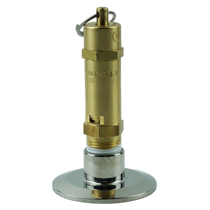 10 PSI safety valve with 2″ x 1/2″ adapter to be fitted on a 2″ flanged fitting on a still. Ideally, this piece will fit on the 2″ fill port located at the top of the boiler on your 16 gallon, 26 gallon, 53 gallon or 135 gallon Mile Hi still. Please advise that this item does not include clamp and gasket. Please find additional parts needed here: