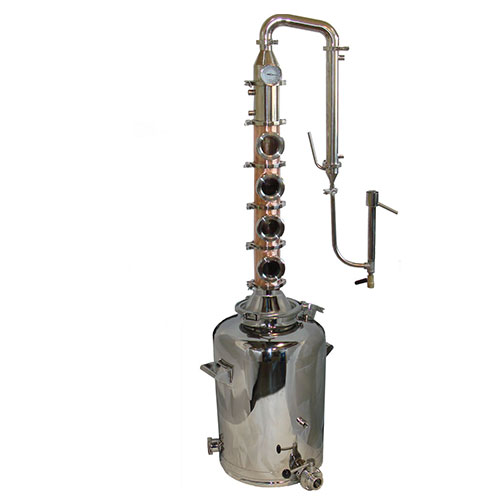 The sectional design allows the distiller to remove copper plates and run as a stripping still or pot still to carry over flavor. Or add all plates and more sections to run high percentage 190 proof for vodkas. You can easily add a 360 degree sight glass with screened gasket to be used as a gin basket or an infusion chamber. Infuse the vapor with flavor for a gin, or spiced whiskey or more flavor in a brandy. Make infused vodkas. This still has total versatility.