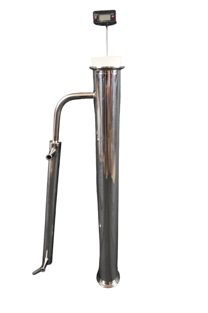 Stock tower comes with a digital thermometer, 2″ rubber bung, 1 2″ clamps, and 2 2″ gaskets. The Stainless Steel upgrade for 69.99 adds a 2.5″ dial thermometer as a replacement for the digital thermometer, and an NPT fitting to tighten the dial thermometer down in place of the bung, as well as an extra clamp and gasket to hold the NPT down. A free bag of yeast is sent with every still to get you started right away!