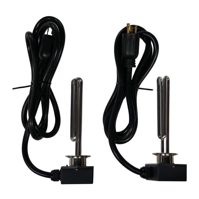 220V Dual Variable Element Temperature Controller. Both elements run on adjustable relays . This allows distillers to have total control of heat in their boiler. Here is a great heating system for boilers of 50 Gallons or more or can be used in smaller boilers to increase initial heat up time. This system is built to last and is ready to be hard wired in conduit or you can install a male plug to your matching receptacle configuration. This controller includes Two cable heater assemblies which each of them are 8ft wire lead to heating element, element housing with 2″ ferrule, and 5500 Watt Heating element. see photos