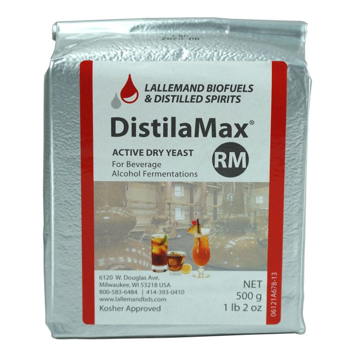 Rum Yeast active dry yeast, DistilaMax® RM is an active dry yeast for use with fermentations of raw cane sugar, brown sugar and or molasses. The RM yeast strain comes from the cane molasses in the tropics and shows high temperature tolerance. DistilaMax® RM rum yeast is a robust yeast used both in batch and semi-continuous fermentations. This rum yeast provides classic rum flavor characteristics and is recommended for production of rum, aguardiente and rhum agricole. Provides a desirable smoothness and classic fruitiness to spirits.