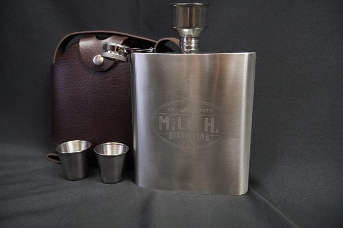 Mile Hi flask with engraved logo. Drink your shine in style with a Mile Hi flask. Two sizes available – 250ml and 500ml